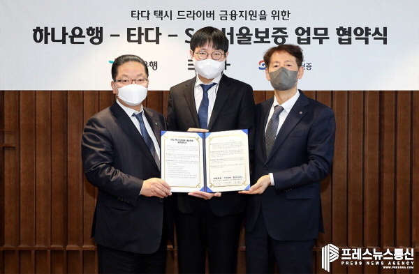[프레스뉴스] 김대일 기자= 하나은행(은행장 박성호)은 서울 중구 을지로 본점에서 모빌리티 플랫폼 타다(브이씨엔씨, 대표 이정행), SGI서울보증(대표이사 유광열)과 『택시 드라이버 금융지원』을 위한 업무협약(MOU)을 체결했다고 밝혔다.