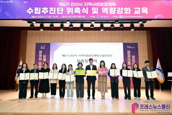 [프레스뉴스] 장현준 기자= 안산시(시장 이민근)는 지난 17일 시청 대회의실에서 제6기(2027~2030년) 지역사회보장계획 수립 추진단 위촉식과 역량 강화 교육을 개최하고 본격적인 계획 수립에 착수했다고 20일 밝혔다.