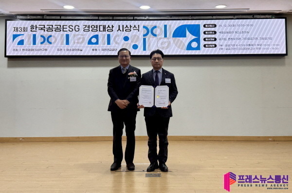 이번 시상식은 한국공공ESG연구원이 주최하고 이소영 국회의원실이 주관, 국민연금공단이 후원한 행사로, 2025년 한 해 동안 공공기관의 ESG 경영 이행 수준을 객관적으로 진단하고 우수 사례를 확산하기 위해 마련됐다.