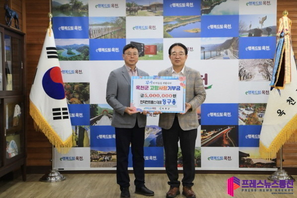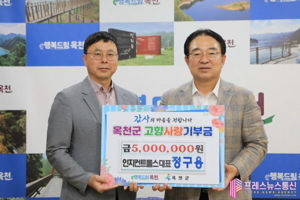 [프레스뉴스] 류현주 기자= 2일 자동차 부품 전문기업 ㈜인지컨트롤스의 정구용 대표이사가 옥천군에 고향사랑기부금을 기탁하며 고향에 대한 깊은 애정과 나눔의 가치를 실천했다.