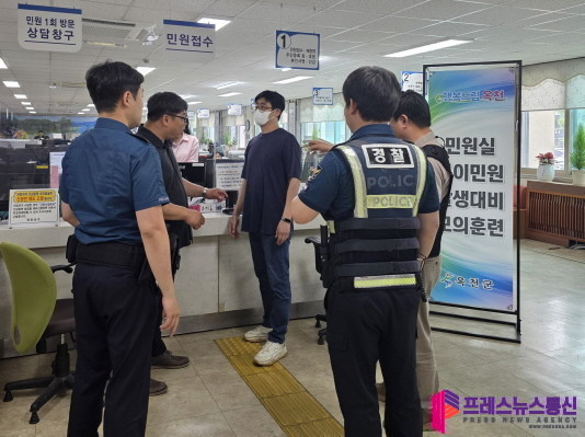 [프레스뉴스] 류현주 기자= 옥천군은 민원실 내 안전한 환경 조성을 위해 2025년 상반기 민원실 특이민원 발생 대비 모의훈련을 실시한다.