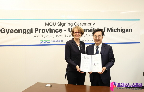 김동연 경기도지사는 현지시각 10일 오후 2시 30분 미국 미시간주 앤아버(Ann Arbor)시에 위치한 미시간대학교에서 로리 맥컬리(Laurie McCauley) 미시간대학교 부총장과 이런 내용을 담은 ‘경기도 – 미시간대학교 문화 . 교육 협력을 위한 협약서’에 서명했다.