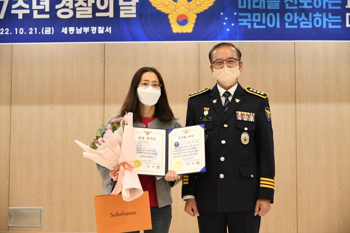 ▲'세종남부 무궁화 대상' 첫 번째 주인공으로 경비교통과 박순환 주무관이 선정됐다.(사진=세종남부경찰서 제공) |