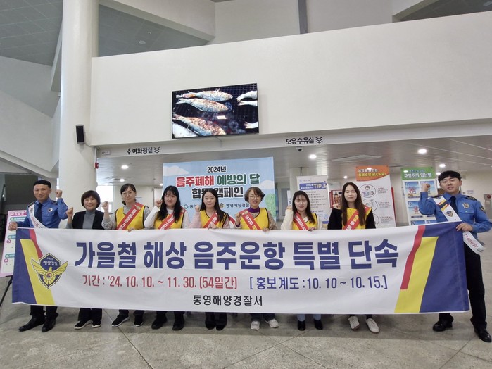 | ▲통영시는 지난 15일 통영항 여객선 터미널 내에서 11월 음주폐해 예방의 달을 맞아 통영해양경찰서와 협력해 합동 캠페인을 실시했다. (사진=통영시) |