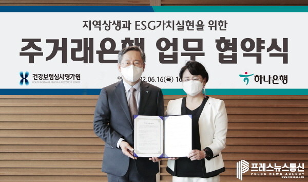 [프레스뉴스] 김대일 기자= 하나은행(은행장 박성호)은 지난 16일 건강보험심사평가원(원장 김선민)과 ESG 경영 공동 추진을 위한 업무 협약을 체결했다고 밝혔다.