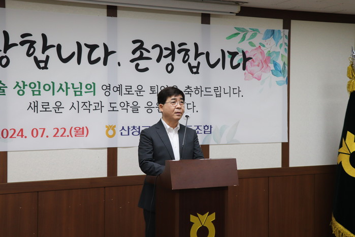 | ▲산청군농협을 반석 위에 올려놓은 이병술 상임이사가 7월22일 퇴임식을 가졌다.(사진=산청군농협) |