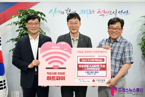 [프레스뉴스] 장현준 기자= 안산시(이민근)는 지난달 30일 ㈜에스에스케이로(대표 이지연)부터 취약계층 여성을 위한 위생용품 104박스(약 4,680팩, 3,000만원 상당)를 기탁 받았다고 3일 밝혔다.