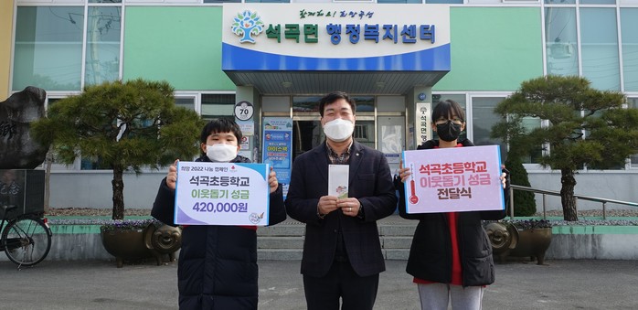 [전남=프레스뉴스] 박정철 기자=석곡초등학교 학생들이(학생대표 조영빈) 교내 바자회 수익금 42만원을 사회복지공동모금회에 기탁했다.
