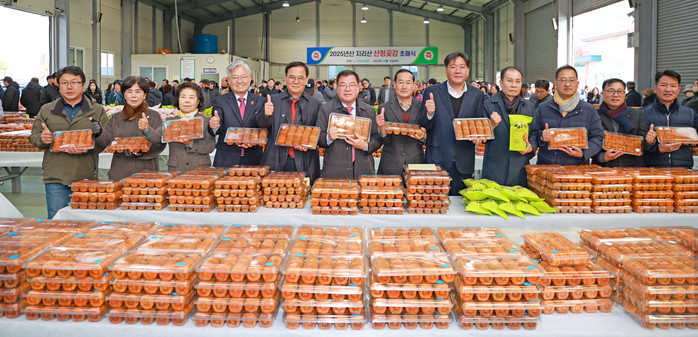 | ▲산청군은 16일 산청곶감유통센터에서 ‘2025년 지리산 산청곶감 초매식’을 개최하며, 고품질 곶감의 본격적인 출하를 알렸다. (사진=산청군) |