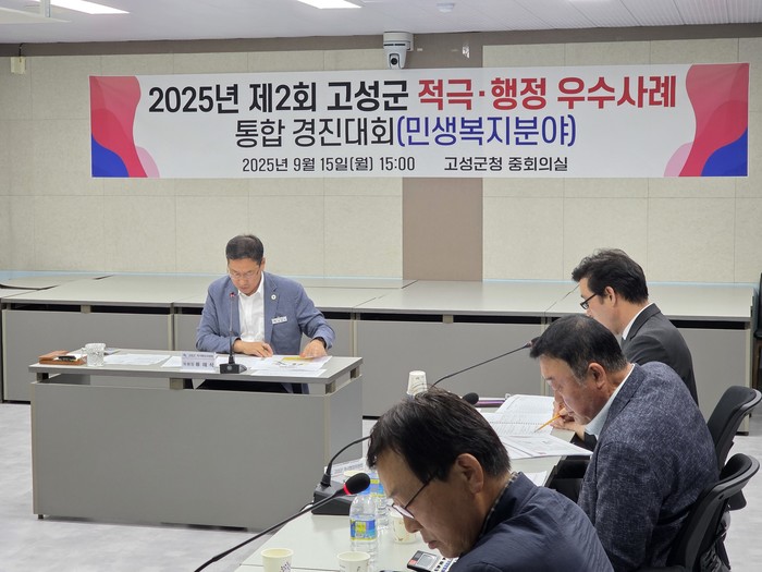 ▲고성군(군수 이상근)은 15일 군청 중회의실에서 2025년 제2회 적극·혁신 통합 경진대회를 열고, 민생·복지 분야의 우수 정책 사례 4건을 최종 선정했다. (사진=고성군) |
