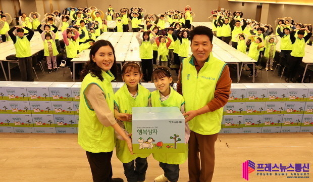 봉사활동에 참여한 임직원 가족들은 추운 겨울 지역사회 취약계층이 풍성한 설날을 보내길 바라는 마음을 담아 우리나라 전통 떡인 오쟁이떡 300세트를 만들었다. 정성껏 빚은 떡 세트는 사골곰탕, 떡국떡, 즉석반찬, 제철과일, 조미김 등의 명절 먹거리와 함께 행복상자에 담겼다.