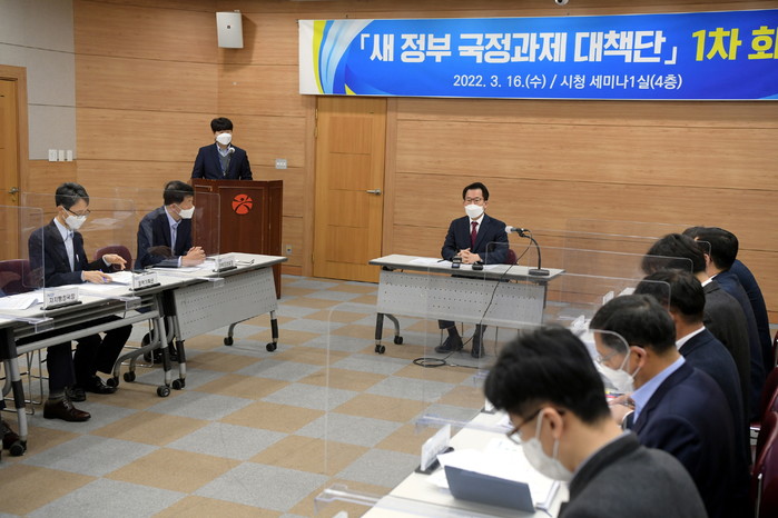광주시는 제20대 대통령 당선인이 결정됨에 따라 문영훈 행정부시장으로 단장으로 하는 ‘새 정부 국정과제 대책단’을 발족하고 16일 첫 회의를 개최했다.