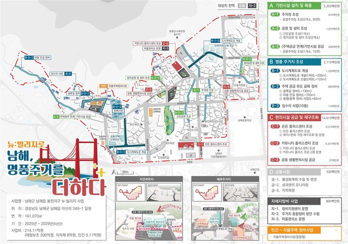 주차장 조성, 공원 및 쉼터, 노후 골목길 개선, 집수리 사업 등을 통해 남해읍 봉전지구의 주거환경이 획기적으로 개선될 것으로 기대된다.