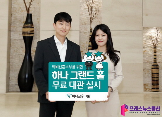 [프레스뉴스] 김대일 기자= 하나금융그룹(회장 함영주)은 그룹 관계사의 6개 공간을 리모델링하여 예비 신혼부부들에게 결혼식 장소를 무상 대여하는「하나 그랜드 홀」무료 대관 프로젝트를 실시한다고 밝혔다.