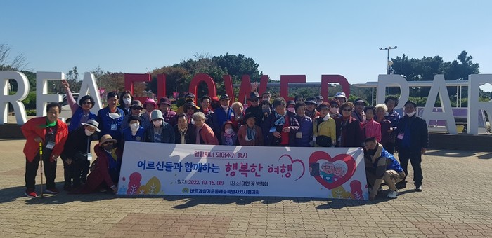 지난 18일에는 65세 이상 저소득층 독거어르신 27명을 초청해 봉사자 15명이 동행, 정성을 담은 선물과 식사제공은 물론 대천항과 고남패총박물관 및 태안 코리아플라워파크 등을 방문해 뜻깊고 즐거운 하루를 보냈다.
