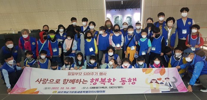 지난 16일 하루 일정으로 추진한 ‘일일부모되어주기’ 사업은 조손가정 및 한 부모 가정 어린이 31명을 초청, 바르게살기운동 봉사자 17명이 동행해 대통령기록관 관람과 함께 대전 오월드를 방문했다.