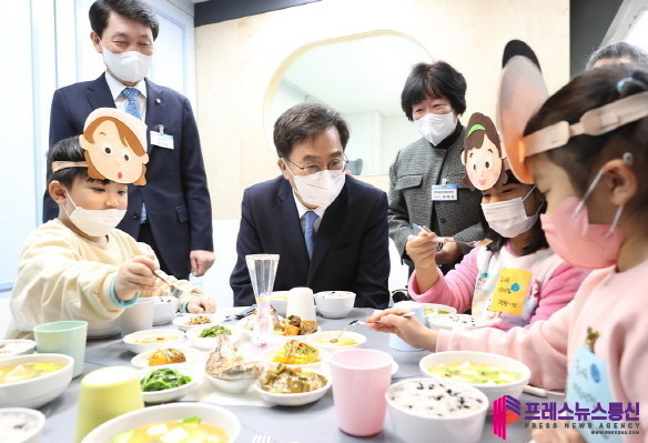 | ▲ 10일 오전 김동연 경기도지사, 김민철 국회의원, 정혜원 경기북부육아종합지원센터 센터장, 내빈 및 관계자 등이 경기북부육아종합지원센터 어린이체험관을 방문하여 어린이들과 인사를 하고 있다.(사진=경기도) |