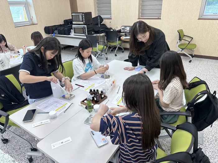 14일 군에 따르면 프로그램에는 단양군 내 청소년 30여 명이 참여했으며, 맞춤형 피부 진단을 비롯해 수분크림·로션 만들기 등 실습 중심의 활동이 전문 이론 교육과 병행돼 진행됐다.