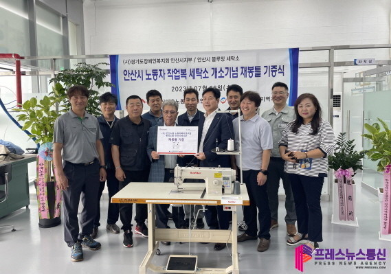 [프레스뉴스] 장현준 기자= 안산시(시장 이민근)는 지난 26일 한국노총 안산지역지부(의장 방운제)로부터 경기도 최초의 노동자 작업복 세탁소인 ’블루밍’ 개소를 기념해 재봉틀 1대를 기증받았다고 27일 밝혔다.