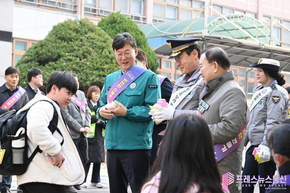 [프레스뉴스] 장현준 기자= 안산시(시장 이민근)는 지난 26일 관산초등학교에서 스쿨존 교통사고 예방과 안전한 등굣길 조성을 위한 ‘스쿨존 교통안전 캠페인’을 개최했다고 27일 밝혔다.