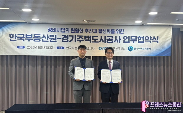 [프레스뉴스] 류현주 기자= 경기주택도시공사(GH)와 한국부동산원(KEB)는 한국부동산원 사옥에서 정비사업의 원활한 추진과 활성화를 위한 업무협약을 체결했다고 8일 밝혔다.