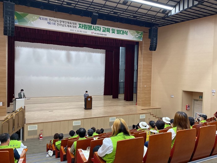 오는 5월 13일부터 15일까지 3일간 진행되는 제30회 전남장애인체전과 20일부터 23일까지 진행되는 제61회 전남도민체전에는 12개 자원봉사단체 등 총 600여명의 자원봉사자들이 투입되어, 대회 종합안내소 및 경기장에서 선수단 안내, 경기운영 보조, 선수 이동지원 등 다양한 역할을 수행한다.