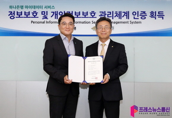 [프레스뉴스] 김대일 기자= 하나은행(은행장 이승열)은 은행권 최초로 마이데이터 서비스 부문에서 금융보안원의 ‘국가공인 정보보호 및 개인정보보호 관리체계(Personal Information & Information Security Management System, 이하 ISMS-P) 인증’을 획득했다고 밝혔다.