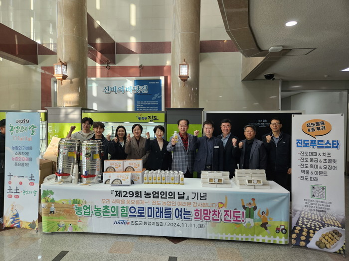 이날 기념행사에서는 진도 쌀을 가공해서 만든 쿠키 3종과 진도 울금 식혜, 진도에서 재배한 친환경 잡곡을 직원들에게 홍보하고 나눔 행사를 진행했다.