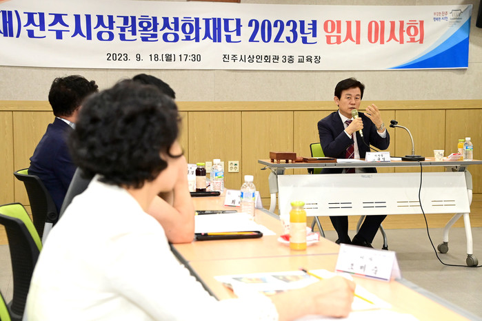 [프레스뉴스] 정호일 기자= 진주시상권활성화재단은 18일 진주시 상인회관에서 조규일 진주시장 등 재단 임원 10명과 관계자가 참석한 가운데 임시이사회를 개최했다.