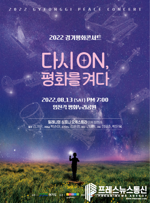 [프레스뉴스] 김대일 기자= 경기도는 ‘8.15 광복’ 77주년을 기념하고, 한반도의 평화와 번영을 기원하는 ‘2022 경기평화콘서트’를 오는 13일 오후 7시부터 임진각 평화누리 야외공연장에서 개최한다.