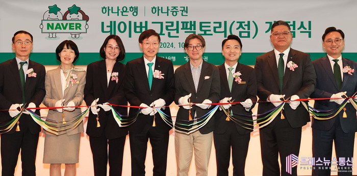 이 날 개점식 행사에는 박애너스 네이버 책임리더, 노세관 네이버 I&S 대표이사를 비롯해 이승열 하나은행장, 전우홍 하나은행 중앙영업그룹 부행장, 이병철 하나증권 WM그룹장 등이 참석해 하나금융그룹과 네이버 간 파트너십의 일환으로 신설된 ‘네이버그린팩토리점’ 개점을 축하했다.