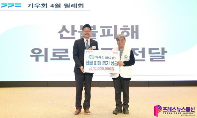 이날 월례회에서 김 의장은 영남지역 대형 산불로 인한 피해 복구, 이재민 지원을 위해 마련된 기우회 위로 성금 1천만 원을 대한적십자사 경기도지사에 전달, “이번 성금에는 기우회 회원들의 따뜻한 연대와 위로의 뜻이 담겨있다. 산불 피해 지역의 빠른 회복을 위해 함께 하겠다”라고 밝혔다.
