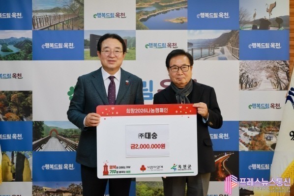 황규철 옥천군수는 “해마다 잊지 않고 이웃을 먼저 떠올려 주시는 ㈜대송의 따뜻한 실천에 깊이 감사드린다”며 “이처럼 이어지는 나눔이 우리 지역을 더 단단하고 따뜻하게 만드는 힘이 되고 있다. 소중한 성금은 꼭 필요한 이웃에게 정성껏 전달하겠다”고 말했다.