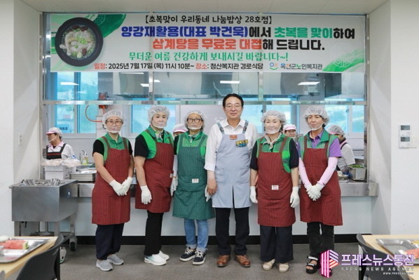 [프레스뉴스] 류현주 기자= 옥천군노인복지관(관장 오재훈)은 초복을 맞아 17일 청산분관, 18일 옥천본관에서 이틀간 ‘초복 맞이 보양식 삼계탕 나눔밥상’행사를 열어 지역 어르신 900여 명에게 삼계탕을 대접했다.