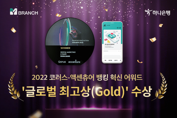 | ▲ 하나은행, 『2022 코러스-액센츄어 뱅킹 혁신 어워드』 ‘글로벌 최고상(Gold)’ 수상(사진=하나은행) |