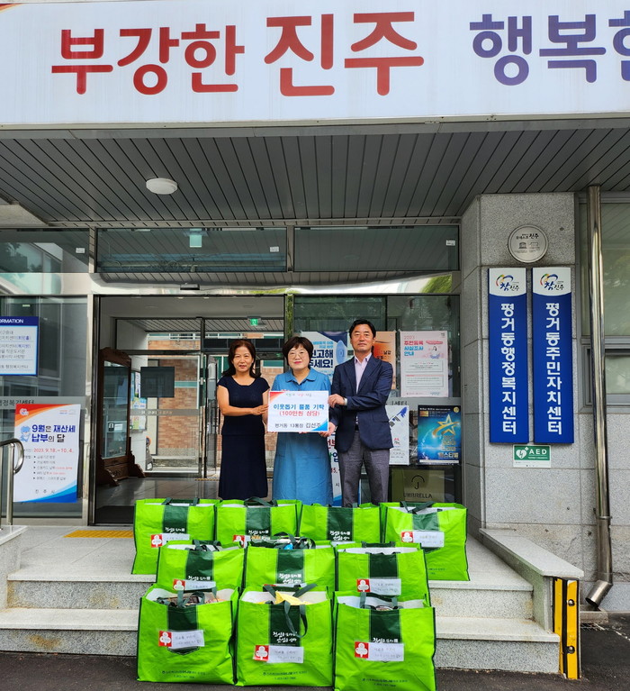 | ▲김선주 평거동 통장 이웃돕기 100만원 기탁.사진=진주시 제공 |
