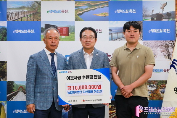 [프레스뉴스] 류현주 기자= 농업회사법인(주) 다산(대표 하승연)이 11일 옥천군청을 방문하여 이웃사랑 후원금 1,000만 원을 기탁했다.