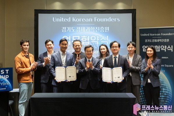 업무협약에는 강성천 경기도경제과학진흥원장과 이기하·정세주 UKF 공동대표가 사인했다.