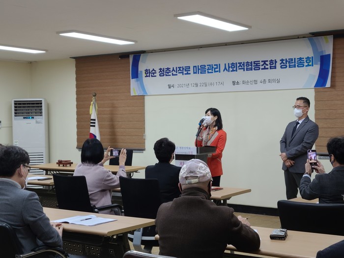 화순군(군수 구충곤)은 22일 화순신용협동조합 대회의실에서 ‘화순 청춘신작로 마을관리 사회적협동조합’(이하 사회적협동조합) 설립을 위한 창립총회를 열었다고 밝혔다.