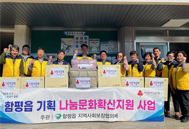 | ▲지역사회보장협의체 단체 및 지원 물품 기념촬영(사진제공=함평군) |