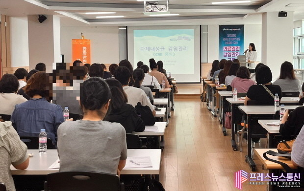 이날 교육에서는 CRE 등 다제내성균 환자 관리를 위한 ▲의료기관 감염관리 체계 확립 및 감시활동 ▲환자 및 접촉자 관리 ▲개인보호구 착·탈의 ▲항생제 적정 사용 관리 ▲무균술과 안전주사 실무 ▲환경관리 등의 내용을 중점적으로 다뤘다.