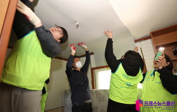 먼저, 출입문과 창문 틈새에 단열 에어캡과 문풍지를 부착해 냉기 유입을 차단하고, 전기장판.전기난로 등 겨울철 온열기구 사용에 따른 과열이나 합선 등의 화재 사고를 방지하기 위해 콘센트 단자와 전등 및 스위치 등을 교체했다. 이와 함께, 오래된 벽지와 장판 등의 교체 작업도 병행해 어르신들이 보다 쾌적한 주거 환경에서 안전하게 생활할 수 있도록 지원했다.