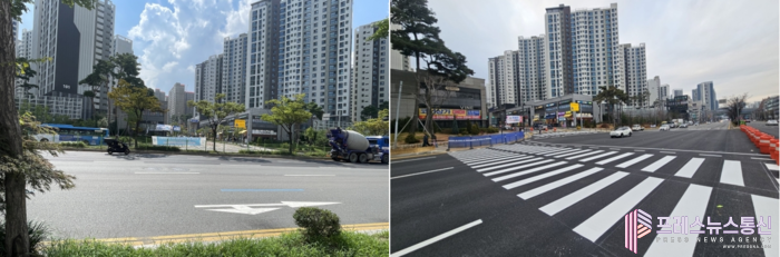| ▲경수대로 평촌어바인퍼스트 앞 횡단보도 신설 전·후(사진=안양시) |