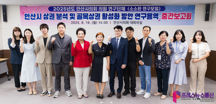 [프레스뉴스] 류현주 기자= 안산시의회 의원 연구단체 ‘소소한 연구모임’(대표의원 현옥순)이 지난 18일 안산시의회 3층 대회의실에서 「안산시 상권 분석 및 골목상권 활성화 방안 연구」 용역 중간보고회를 개최했다.