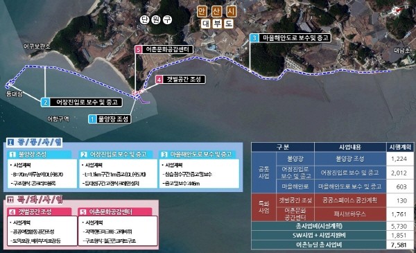 이 사업은 해양수산부 공모사업으로 낙후된 어촌·어항의 정주여건 개선, 수산 관광 등 산업발전, 주민역량 강화 등을 통해 어촌·어항 지역의 사회경제적 증진을 도모하는 사업이다.
