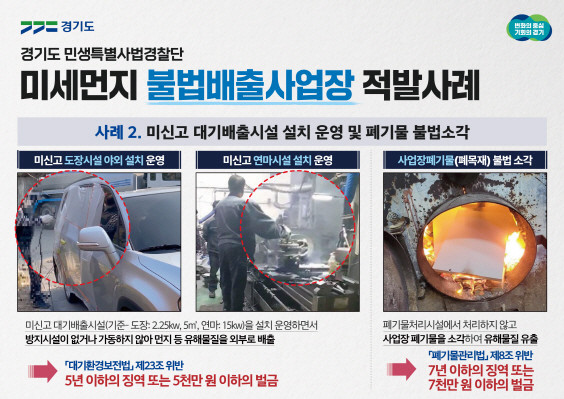 | ▲ 미세먼지 불법배출사업장 적발사례 그래픽(사진=경기도) |