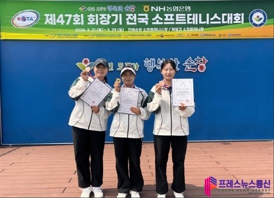| ▲제47회 회장기 전국 소프트 테니스대회우승(문혜원,이수진,조도경 선수)사진=옥천군 |