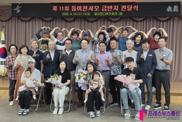 이번 전달식에서는 2024년 한 해 동안 동이면에서 태어난 신생아 4명에게 금반지가 전달되며 아기의 탄생을 함께 축하하고 건강한 성장을 기원하는 따뜻한 자리가 되었다.