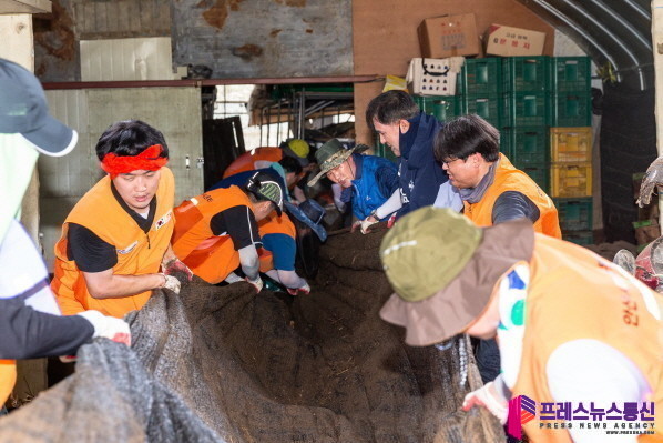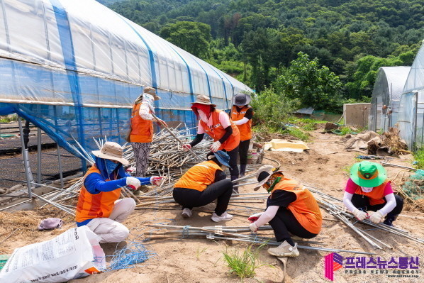 의원들은 이날 현장에서 피해 주민으로부터 상황에 대해 설명을 들은 뒤 인접한 조종천의 범람으로 침수된 비닐하우스 내 폐자재를 치우고 집기를 정리하는 작업을 진행했다.