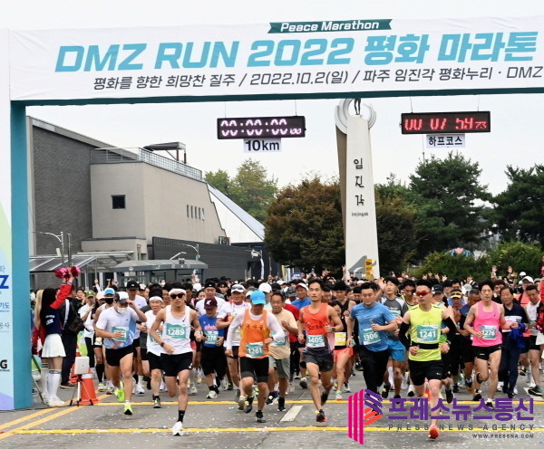 올해 대회는 짧은 모집 기간에도 불구하고 전국 마라톤 동호인, 주한미군, 국군 장병 등 1,000여 명이 참가한 가운데, 임진각 평화누리에서 공식행사를 시작으로 하프(약 21㎞), 10㎞ 2개 코스로 나뉘어 진행됐다.
